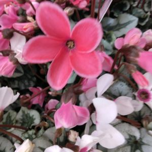🌿 シクラメン 🌿 シクラメンと言えばうつむいて咲くお花のイメージですが… 何と上向き咲きのシクラメンが💕💕💕 お花屋さんにて…