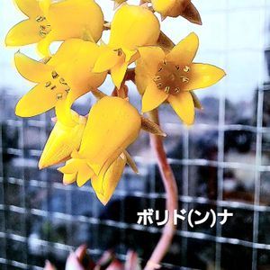 明るい陽射しが輝いています☀️ ポリド(ン)ナ、真っ黄っ黄な花、多分、プリドニス(花うらら)の交配種かな?💛 エケベリアの花は撮影投稿後、カット✂️して👌生け花グラス🍷にまわっています😃