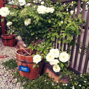 玄関前のつるアイスバーグです。 今年は冬に忙しくて誘引できなかったのと、剪定も適当だったのですが、まぁ、何とか綺麗に咲いてくれてます^_^; 今年はもう少しちゃんと剪定と誘引がんばろー(^◇^;)
