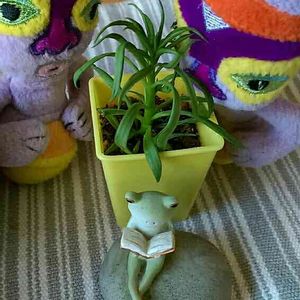 なんだ? 新入りか?(•ω<)✌ ...そうみたいだな🌱 匂いするか? ...しないな( *¯ ³¯*) 🐸✨静かにしてよ~ 読書中なんだから🐸✨