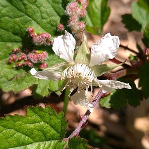 本丸跡までの山道の脇に咲いていたミミナグサ。 小さい小さい花ですが、あちこちに咲いていました❣️ アップで見ると清楚な可愛いお花です❣️ 反対に④⑤は4、5センチはある大きな花。 野バラかと思いましたが、AIがクサイチゴだと教えてくれました❗️