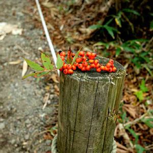 [おもてなし]!? さりげなく杭に飾られた赤い実に ほっこりしました ホントは結構な登り坂でしたが(^ー^)