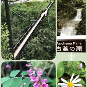 昨日の📷 鬼怒楯岩大吊橋🌉 風が吹いてる中渡りました。 揺れ無さそうに見えますが、頭がフワフワして、腰が引ける怖さ😱 10才老けたような格好に😆 山道に咲いていたお花🌸