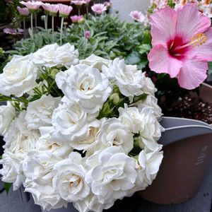 バラ ベビーアイスバーグさん💕 アイスバーグさんも開花サイクルに入りました🤍 ②まだ蕾があるのでこの先も楽しめそうです ③こちらは咲き進みすぎたお花も 🏷️さっちゃんさんの白い水曜日♡でお願いします