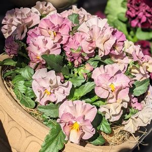 ヌーヴェルヴァーグ “アンジュ“ サトウ園芸さんのヌーヴェルヴァーグのアンジュ、一株で、いろんな色に色変わりし、変化を見せてくれてます😍 水色、クリーム色、アプリコット色、アンティークなピンク系の紫色など一つ一つが美しい💖 パンジー&ビオラ⑨