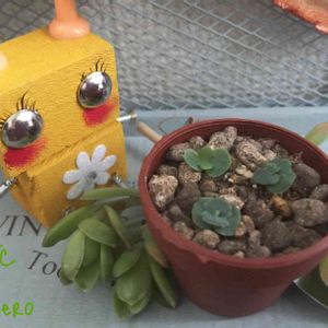 こんにちは☀️ 今日はおまけのpicです この前のダイソー産ウサギ🐰の鉢の中に この子達がいました 欲しかった子宝草の子かな? とも思ったのですが アロマティカスの葉挿しにも似てる 君は誰? ちっちゃいけど🌱根っこは 出てます(*´艸`*)♡ 育った時のお楽しみかな((o(´∀`)o))ワクワク