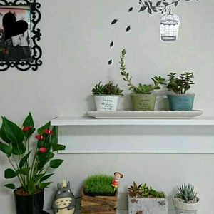 リビングに棚をつけました。 お気に入りの場所です╰(*´︶`*)╯ 2歳の娘がトトロを見て『お母さん』って(。•́ωก̀。)…グス 子供は正直ですね(笑)