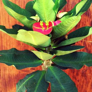 ユーフォルビア属、花キリン。 バリ島で見つけて以来ずっと欲しかった植物! 新たな花と葉がどんどん増えて、順調に成長中。 画像では自慢のトゲトゲが見えないのが残念…。