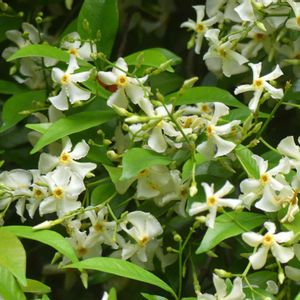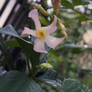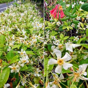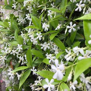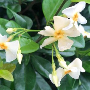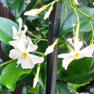 スタージャスミンも咲いています☺️ 強すぎず程よい良い香りで私は好みです🎶 うちの敷地の鉢に植わっていてお隣さんのフェンスに絡んでいるんです❣️お隣さんとはガーデニングお友達なので一緒に楽しんでいます🍀