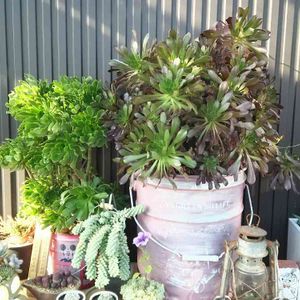 おはようございます😃 雨上がりで よく晴れて気持ちいい朝です‼️ 先日 タニ友ちゃんの お勤めのお店で アエオニウムを 4種類 お願いしていたのが届き 迎えに行き 我が家のアエオニウムファミリーになりました💕 お迎えしたのは サンバースト 艶姿 レモネード ムーンバースト ちょっと嬉しい😃 いや かなり嬉しい😆