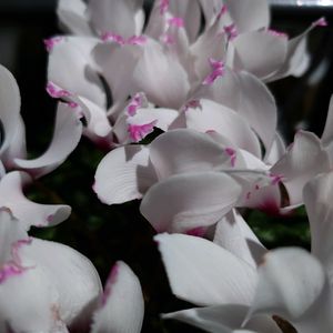 フレグランスシクラメンのアブソリュードゥモレル、現在の様子です😊 買った頃は、花の纏まりが無く乱れていましたが、今は綺麗に立ち上がり纏まっています😍 香りの方も持続中です😍