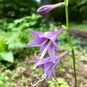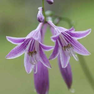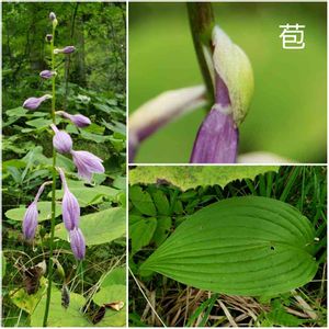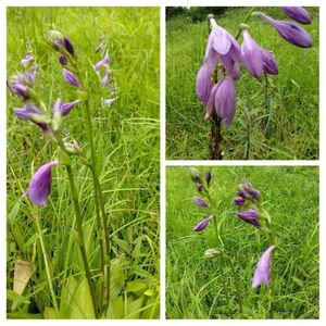 小葉擬宝珠 キジカクシ科 花 7月〜8月 日当たりのよい湿地に生える。 表面は灰緑色で光沢はなく、脈が凹む。淡紫色〜濃紫色の花をやや下向きにつける。内側に濃紫色のすじがある。 果実は熟すと下から3裂する。