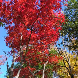 2024.11.7 Thursday ☀️ 晴天 空気はひんやり やっと11月らしい気候の日になりました。 真っ赤な実をつけて、葉っぱも紅葉してきた花水木 可愛い蕾と一緒に見られる樹木です。こんなに沢山の実をくっつけた花水木の実は見たことがない! 凄すぎてパチリパチリしてたら、どんだけ撮るの?って呆れ顔のお孫ちゃん! 花水木の紅葉を綺麗にパチリしたのは(右上)、そのお孫ちゃんです。「何でそんなに上手いの?」って言ったら、色々と撮り方を教えてくれた(褒めて育ててるつもりのわたし…) 左側4枠は時計回りに ○タイワンツクバネウツギ(5枚めにも) 萼片が残って綺麗なライトグリーンです。まるでお花のようです。 スイカズラ科ツクバネウツギ属 絶滅危惧種 ○ハナミズキの真っ赤な実 こんなに着いてるのは初めての出会いです。 ○オオイタビ(4枚めにも) なにこれ? 一つ見つけると、次々に見えてきて、どんどん奥へ(赤ずきんちゃんになっちゃう〜って呟きながら楽しんでます♪) クワ科イチジク属 常緑蔓性木本 茎から出る気根で固着しながら木や岩場に這い上がるそうです。 ○フクレミカン(福来みかん)(3枚めにも) 茨城県の筑波山麓でかなり古い昔から作られた品種。 爽やかな香りと酸味が特徴の小さなみかんです。 皮は陳皮として、七味唐辛子の材料として利用されています。 下の左側の真っ赤な実 ○シロダモ クスノキ科シロダモ属 常緑広葉樹の高木 雌雄異株 果期は翌年の秋に熟し、花と同時期に鑑賞できる。 シロダモの蕾がたくさん着いてました(2枚め) 左側4枠 左から時計回りに ○クスノキ クスノキ科ニッケイ属 常緑高木 雌雄同株 両性花 秋に古い葉が落葉する時に紅葉する。 ○シラカシの実 ブナ科コナラ属 常緑高木 可愛いドングリ ○チャノキ ツバキ科ツバキ属 常緑低木 白い5枚から7枚の花弁は下向きに開き、かなり多数の雄蕊がある。 ○シロダモ