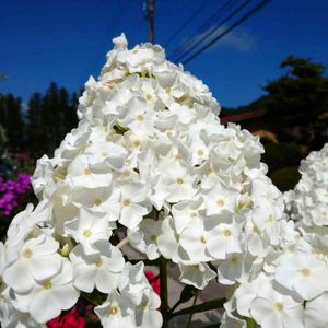 純白のフロックスと青い空 まっぶし〜☀︎*.。