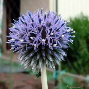 ルリタマアザミ 咲きました。ほんとは下まで咲くんですよね?初めて咲いたから力がないのかな! コロコロっとして可愛いです。 ドライフラワーにする時期はいつなのかなぁ?