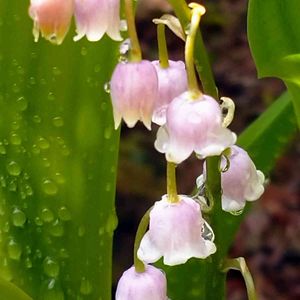 ピンクのスズランに雨の滴が・・・ いまさっき急に雲行きが怪しくなり一雨ありました。