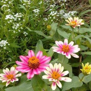 我が家の小さな庭の花達です。 バーベナ ブルーサルビア ジニア アリッサム