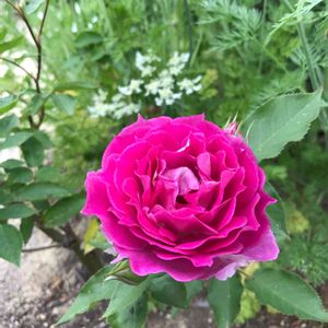始めましてのお花です。 きりりとしたお顔立ち。 薄いピンクのバラと合うかなと植えてみました。