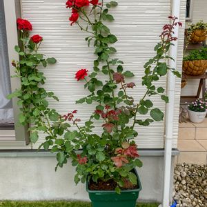 ドンファン、鉢増し🌹✨ ロゼアスクエア360へ✊🏻 春の大苗、高さが出てきました😆 鉢から綺麗に抜けて、白い根っこもビッシリ✨生育良好😊 これで暑い夏も快適かな☀️