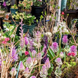 青紫エリアの花達💙💜💚 葉牡丹が伸びて来て花が咲きそうだったので蕾は全部ポキっと折って来年の踊り葉牡丹の為に花に栄養がいかない様にしてます🌿
