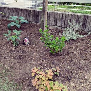 🏷️8日は葉っぱの発表会 参加します😊 ①〜④ 隣の空き地法肩に植えてみました どの子が1番雑草抑えに効果が有るかなぁ🤗 ⑤ サラサドウダンが咲き始めました😃