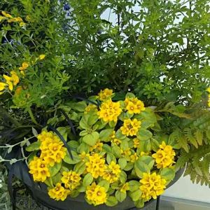 去年はほとんど咲いてくれなかったのに、ちょっと鉢の位置を換えただけでこんなに可愛く満開😆 この鉢の中身は春に少し中身をリニュアルして、メインにエニシダを植えかえたりハーブを足したり、葉っぱだけの楽しみになっていたリシマキアがこんなにエニシダとかぶる黄色の花を咲かせてくれるなんて😊 新しくリニュアルした土や他の相性も良かったのかな?😆うれしい❤️可愛い❤️