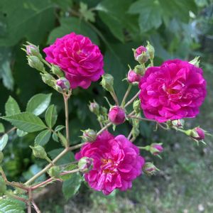 おはようございます😃 曇りです☁️ バラが咲きだしてひと段落気味のお庭です😃名札が飛んでしまい誰だかわからなくなった子だらけのわが家。 この子はモリスさん? アブラハムダービー? 蕾がたくさんついてそのせいか一つずつのお花は小ぶり。でも花弁は充分に折り重なって美しい😍 アブラハムダービーはもっと大輪? 誰なのかわからないのが悩ましいけどとにかく可愛いです🥹 どなたかお詳しい方よかったら教えてくださいませ🙇♀️