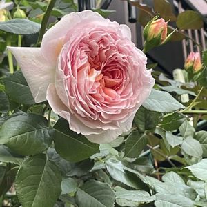 我が家の桃色さん ①挿し芽アブラハムダービーの蕾♡ ②アブラハムダービー開花 穴開けられてるけど〜😆 挿し芽の子 まだアプリコットカラーがあまり のらない〜🥲 ③シャリマーも可愛く開いてきました💕 🏷️木曜日は桃色 🏷️毎日ローズショー 参加させてください
