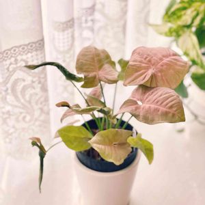 ☘️ シンゴニウム 秋にお迎えして元気に育てくれています😊 薄いピンク色な葉が素敵〜✨✨✨ 観葉植物は緑が多いのでシンゴニウムさん その中でひっそりと成長中💗