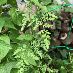 我が家のグリーンカーテン。私が植えたゴーヤと朝顔はどこへ?みんな自由すぎるでしょ!(*゚∀゚*) ※シダのようなチリチリの葉っぱのツル植物、カニクサと教えていただきました。