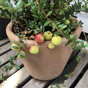 オオミノツルコケモモ🫢 連れてきた時は かわいいコンパクトサイズ でしたが...。 現在では大暴れ中⁽⁽٩(◍˃ᗜ˂◍)۶⁾⁾ とりあえず実が成り 色付いてきたのでpicです🤭
