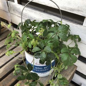 シュガーバイン🌿 ぶどう科の5枚の葉っぱが かわいいリーフちゃん♪ 葉っぱの後に甘い樹液がつくので この名前が付いたそうですが ん〜どうでしょ🤔 🏷️観葉日♧