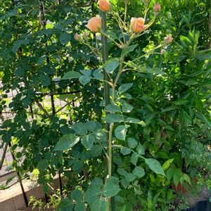 オープンガーデンで素敵だったティージング。名札にはティーディングと書かれてたけど正しくはティージング・ジョージアなのかな。ほのかな香りがするオレンジ系の半つる性。挿し木用に枝をいただいたので成功するといいな。