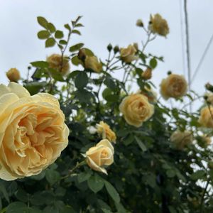 隣地境界のフェンスに這わせたくて育てていたイングリッシュローズのティージングジョージア。 お隣のお宅の除草剤にやられて瀕死だったので、庭の真ん中に移植しました。何とか復活してくれて良かった。今年は花も小ぶりで遅くて、この連日の暑さで1日で開ききってしまい、蕾がほどけるように開いていくイングリッシュローズ独特の美しさが見れず残念ですが、来年に向けて株の充実を図りたい!!