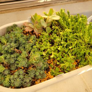 こんばんは😊 買いっぱなしの名無しセダムをやっとプランターに植え替えて、その隙間に素敵便で頂いた胡蝶の舞とブロウメアナを入れこみました😊 どちらも凄い根が張っててビックリしました(Ö)あっという間に両端まで侵食しそうな勢い😅 今後どうなるか楽しみ(*´罒`*)ニヒヒ♡