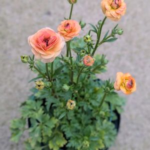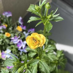 ラナンキュラス ラックスのベスタリスまだまだ蕾が沢山あります🧐 蕾は黄色ですが咲き進むとアンティークなアプリコットに変化していく様子はとても美しいです😊💕 10号鉢、2年目。