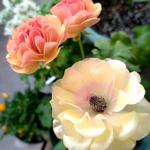 大好きなラナンキュラス ラックス 引き続き花盛りです😊 左:ベスタリス 右:ハリオス 優しい色合いでどちらも可愛い🍀