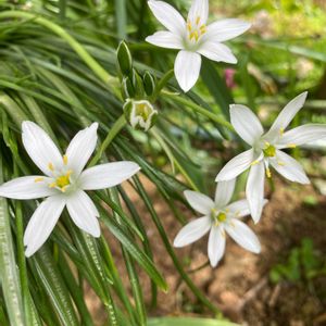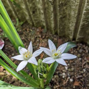 二年前に頂いた球根に〜今年も お花が咲きました🤩💠 名前を調べても‥ ・ゼフィランサス? ・オーニソガラム? 違いが分かりませんm(_ _)m 😊