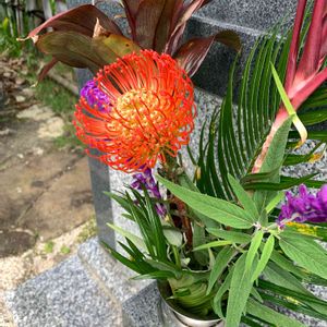 9月22日は父の命日 十七回忌法要も無事に終えて一安心❤️ 光陰矢の如し 17年前の9月も毎日よく晴れて 綺麗な青空を見上げながら 病院に通ったなぁ~ 気温はもう少しマシだったけれど・・・ お花は1週間経った フラワーアレンジメント🏵️🌿 まだまだファーガスやヘデラなど葉っぱ🌿が 元気なのでお花を代えて再利用~🎵 思いっきり秋色にしようと選んだお花だけど ちょっとオレンジ色かぶりすぎ~👀‼️ ケイトウ、ピンクッション、エリンジウム、 スプレーマム、ファーガス、ヘデラ 父に捧げます✴️