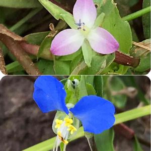 上堰潟公園 9/21 最近、可愛い花リストに入れた、イボクサ(疣草)。ひょっとして咲いているかナ、と思って探したらビンゴ。嬉しくて、テンション⤴️⤴️、となりの山の神は、冷ややかな眼差し。 🎉🎉🎉🎊🎊🎊🎉🎉🎉 数日前と同じ花の、同じ様な写真を投稿すると、芸が無いので。ツユクサ(露草)とのコラボにしました。 この娘達、同じツユクサ科なので、よく似ています。属は違うけどネ。一日花、花弁が3枚、雄蕊3本、仮雄蕊3本、同じ様な場所が好き。 💕💕💕♥️♥️♥️💕💕💕 両方とも、可愛いネ。イト〜シゲラテ〜。