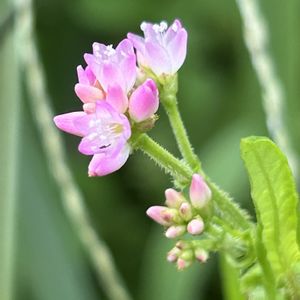 今日の散歩 1️⃣ ハナタデ 真っ赤な蕾から 淡い白ピンクの花 しな垂れた花茎は まるで 舞妓さんの花飾り を想像 2️⃣ヤマハギ 我が家の空き地に 毎年 増え続ける 可愛い花 3️⃣チカラシバ 名前通り花茎もしっかり太く 花穂も 立派 黒紫の穂はツンツン剛毛 緑の中に目立ちます😊 4️⃣イヌコウジュ? 調べたら イヌコウジュと出ましたが? 5️⃣イボクサ 我が家には田んぼが無いので 初めての出逢い 湿地に生育 ツユクサ科で 完全に水没しても 大丈夫、種子で繁殖 花弁3枚で淡い紫色 可愛い😍のにイボクサとは😟