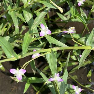 イボクサ(疣草) ツユクサ科イボクサ属の1年草 別名 イボトリグサ(疣取草) 近所の田んぼの中に咲いていました。 3枚の花びらの先っぽが淡いピンク色の 1.2㎝くらいの小さな花です。 雄しべは、2タイプあって、長くて、葯が青紫色のが、完全雄しべ 短くて、葯が淡紫色のが、仮雄しべ だそうです。 何度もそばを通っていたのに、 花が咲いているのを、 初めて、見ました(*・∀・) 葉っぱと茎だけの草姿を見て、 これまで、育ちの悪いツユクサだと思い込んでいました(^^;