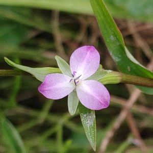 イボクサ ツユクサ科イボクサ属 ほんの1センチ程のお花ですが、ほんのりピンクで目を引きました🍀。 典型的な水田雑草で、稲に絡みつく迷惑な植物のようですが、こんなところで見かけると、ツユクサみたいで可愛かった😁
