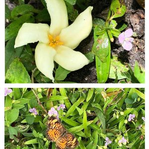 ⬆️ パパイヤ雄花 イボ草 ⬇️ イボ草 🦋Pearl Crescent Butterfly