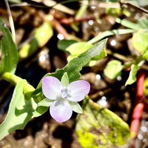 湿地に咲く可愛い雑草です。 調べたらイボクサ(疣草)でした。 花径は15ミリとても小さくて花びら3枚です。