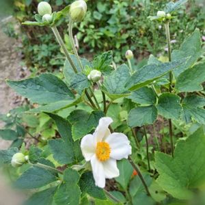 母の秋明菊 とても元気な秋明菊です。 肥料かしら⁉️ 茎がとても太い❗
