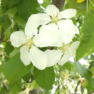今年は可愛い桃色混じりのお花に間に合わず ① お花は白一色 ② 地面は真っ白 ③ 7日前の落ち林檎(多分前年の)は苔の上 ④ 樹木見上げ隊🤍 ⑤ 姫林檎の遥か上空には飛行機雲┈┈ ︎✈︎ と よく見ると白い雲の後ろに影? ☁雲の図鑑によると「巻層雲のスクリーンに 飛行機雲の影が青黒い線となって 映し出されている」 のようです p