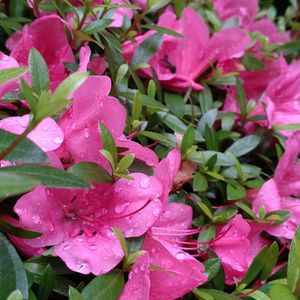 今日のお花 サツキ 手入れの行き届かない庭の 伸び放題の枝葉の隙間で 健気に咲いてくれています 雨上がりにパチリ💞 p