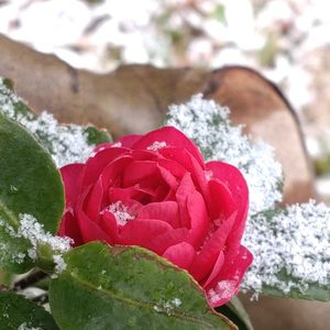 今朝の庭のサザンカさん この冬何度目かの雪❄ この前の雪の日 鉢植えのムラサキゴテンと 庭の隅のブライダルベールが ベチャッと死んだようになってしまって それらは追い討ちをかけられ 復活すると思えないほど 絶望感に満ちているというのに… どうだろうサザンカの美しいこと すっかり雪を味方に輝いている 驚きと感動に寒さも時間も忘れて眺めた 4枚目は多分アジサイ?😅 5枚目は2月18日の薄っすら彩雲☁ p