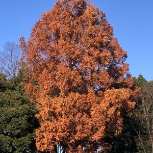 こんにちは。 息子が卒業した小学校のメタセコイア、先週末に紅葉のピークを迎えたようです。 チラホラ見えていた緑色の葉も、更に減りました。(1枚目、12/6) 週明け頃から落葉が始まってきたようで、上の方の葉が少なくなってきました。目を凝らして見ると、3本の幹が見えるようになりました。(2枚目、12/9) 🏷️樹木見上げ隊 🏷️好き好き大す木 参加します。
